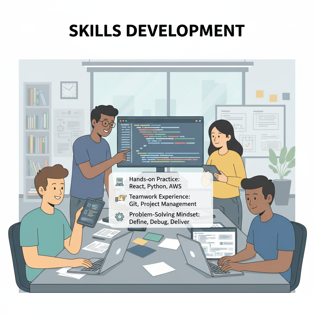 Hands-on Practice: Rather than simply reading about React, Python, or AWS, projects enable you to work hands-on with these tools, languages, and frameworks. Practical exposure makes theoretical knowledge stick.